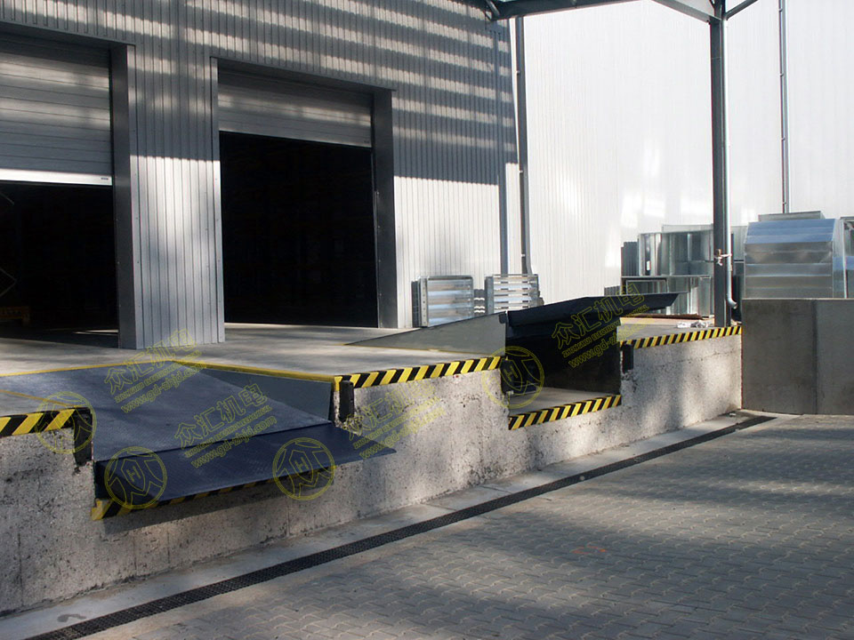 伸缩式装卸平台,其活页搭板可伸出货台800mm以上,方便拼柜前端开启的集装箱或铁路货运站台等进行装卸,也可以和工业滑升门配套用于冷链行业无断链装卸(滑升门可完全密封,达到隔绝冷桥的效果)。
